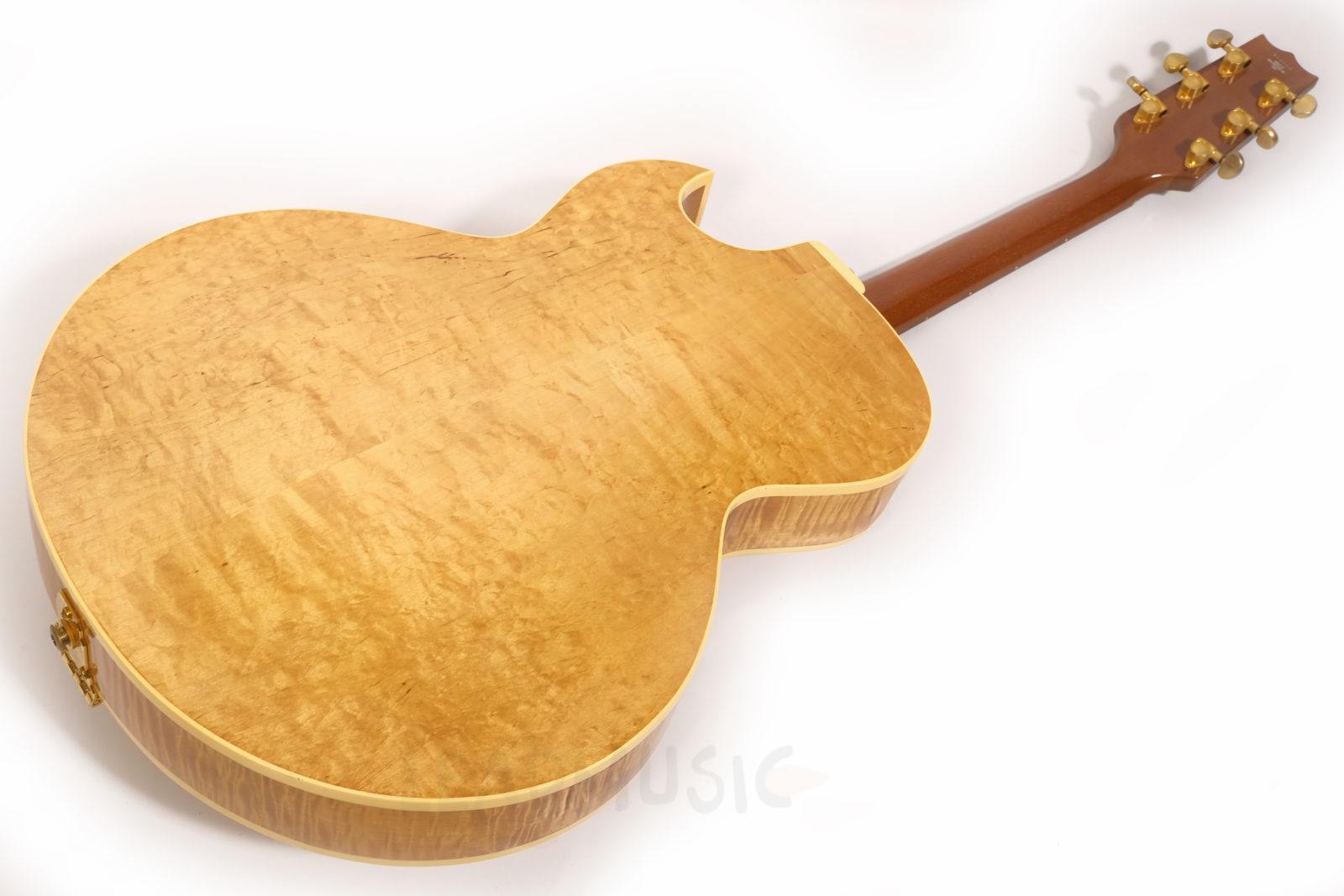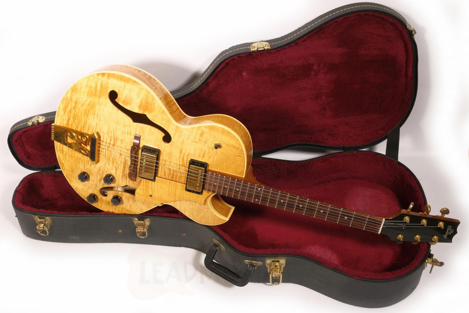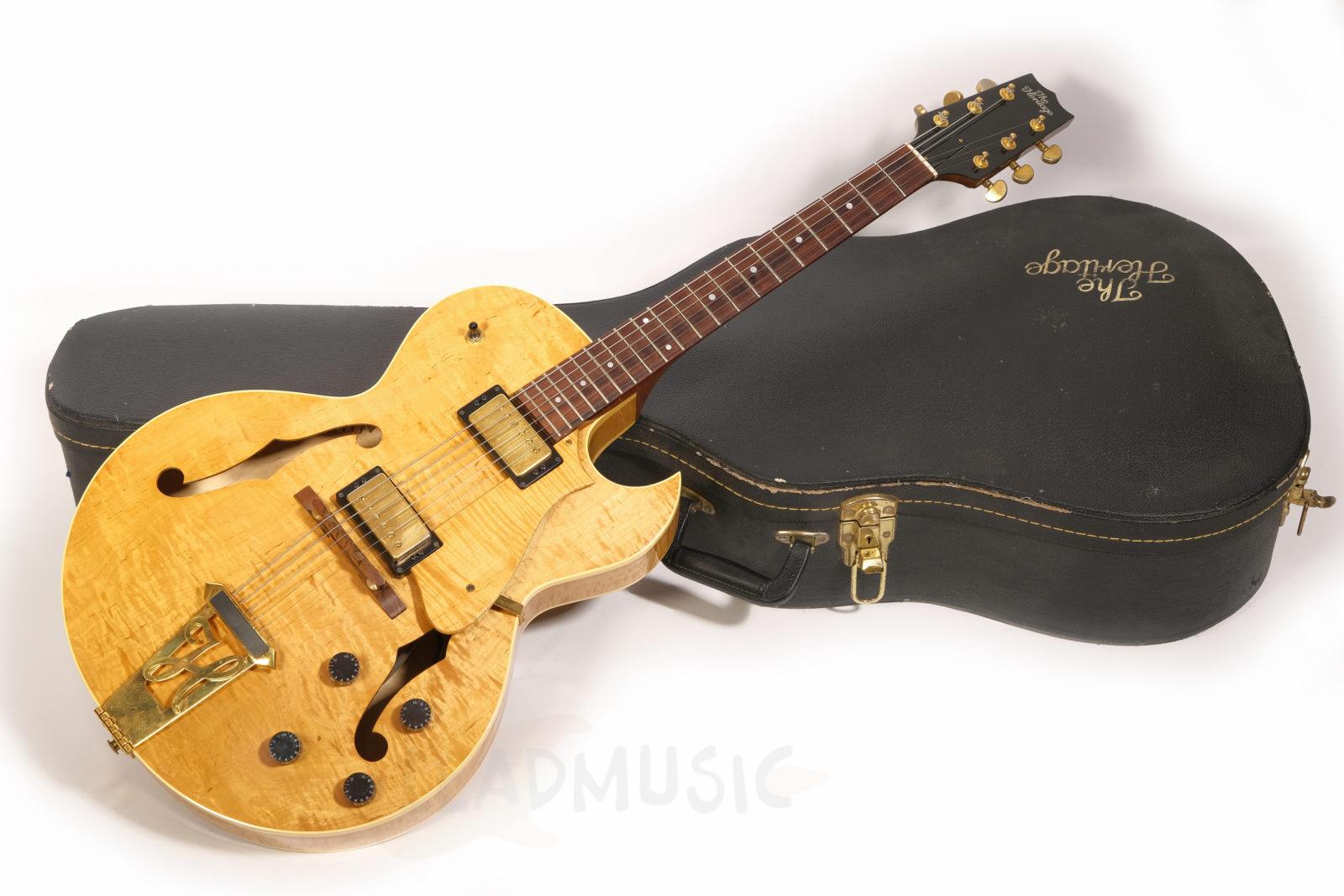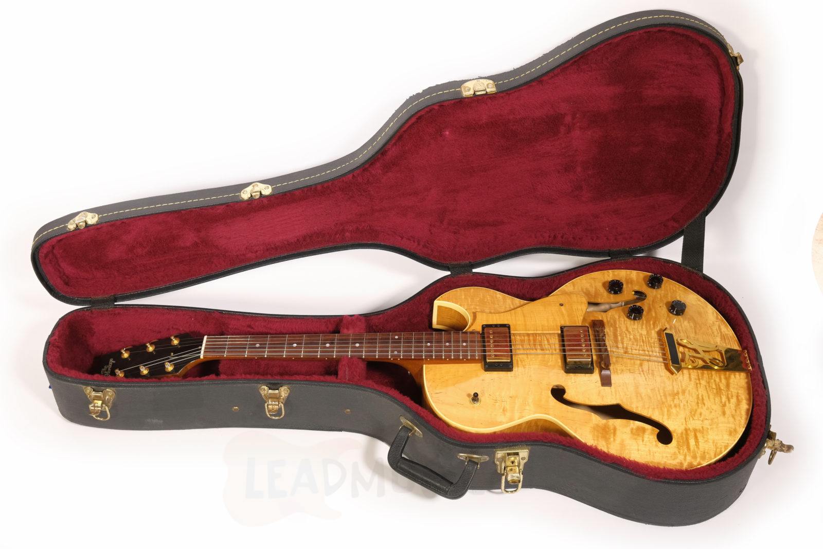 Dieses Exemplar der H575 kommt mit einer besonders stark geflammten Decke, goldener Hardware und einem wunderschönen Antique Natural Finish. Der Zustand ist sehr gut bis exzellent – offensichtlich kaum gespielt von den Vorbesitzern und zuletzt wohl eher gesammelt als regelmäßig gespielt. Leichte Spielspuren und kleine Kratzer hier und da, aber keine Lackabplatzer. Die Bünde wurden nachpoliert und zeigen nur minimale Gebrauchsspuren.