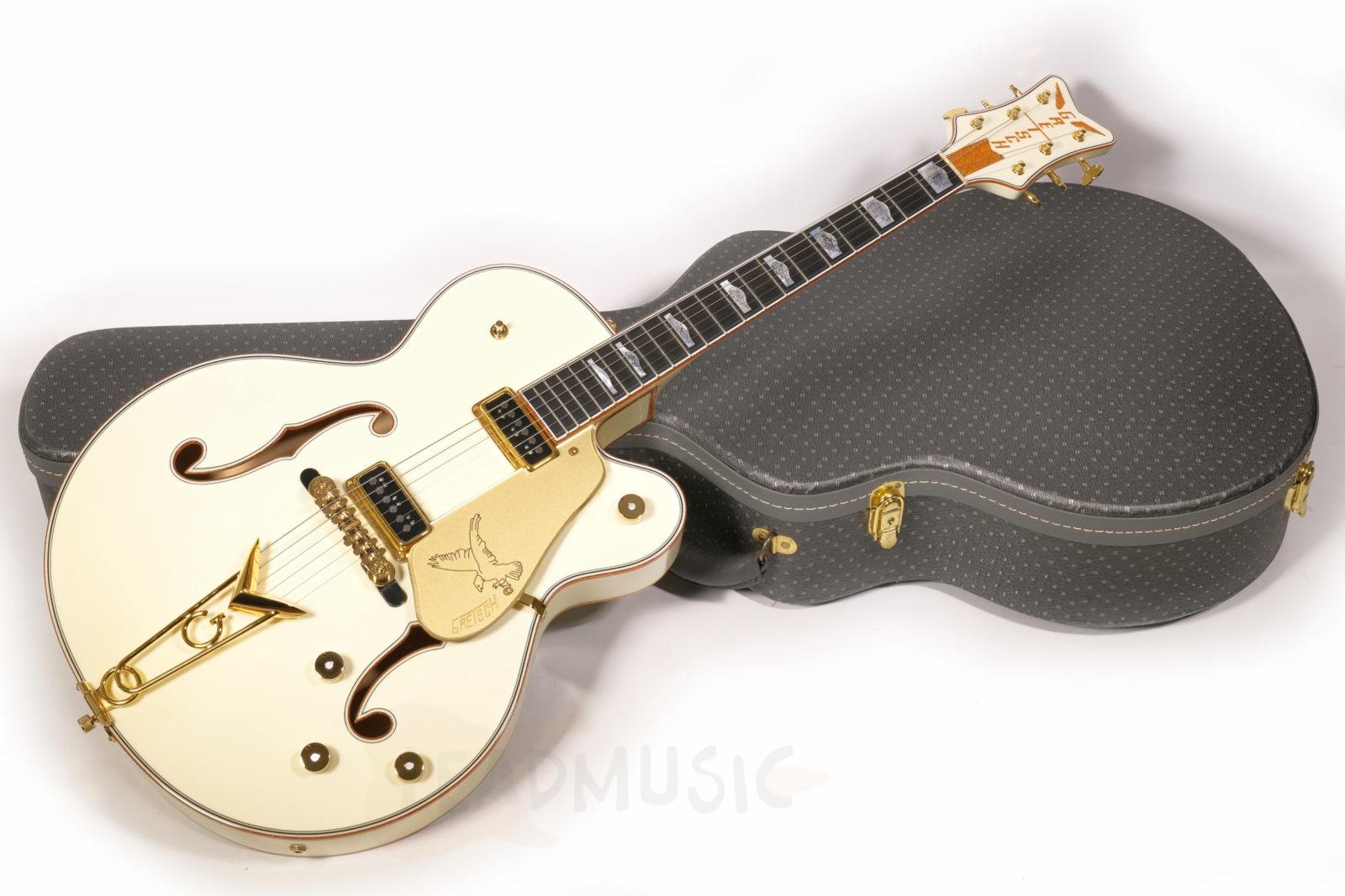 - Pickguard: Gold with Gretsch Logo plus „White Falcon“ Signpost