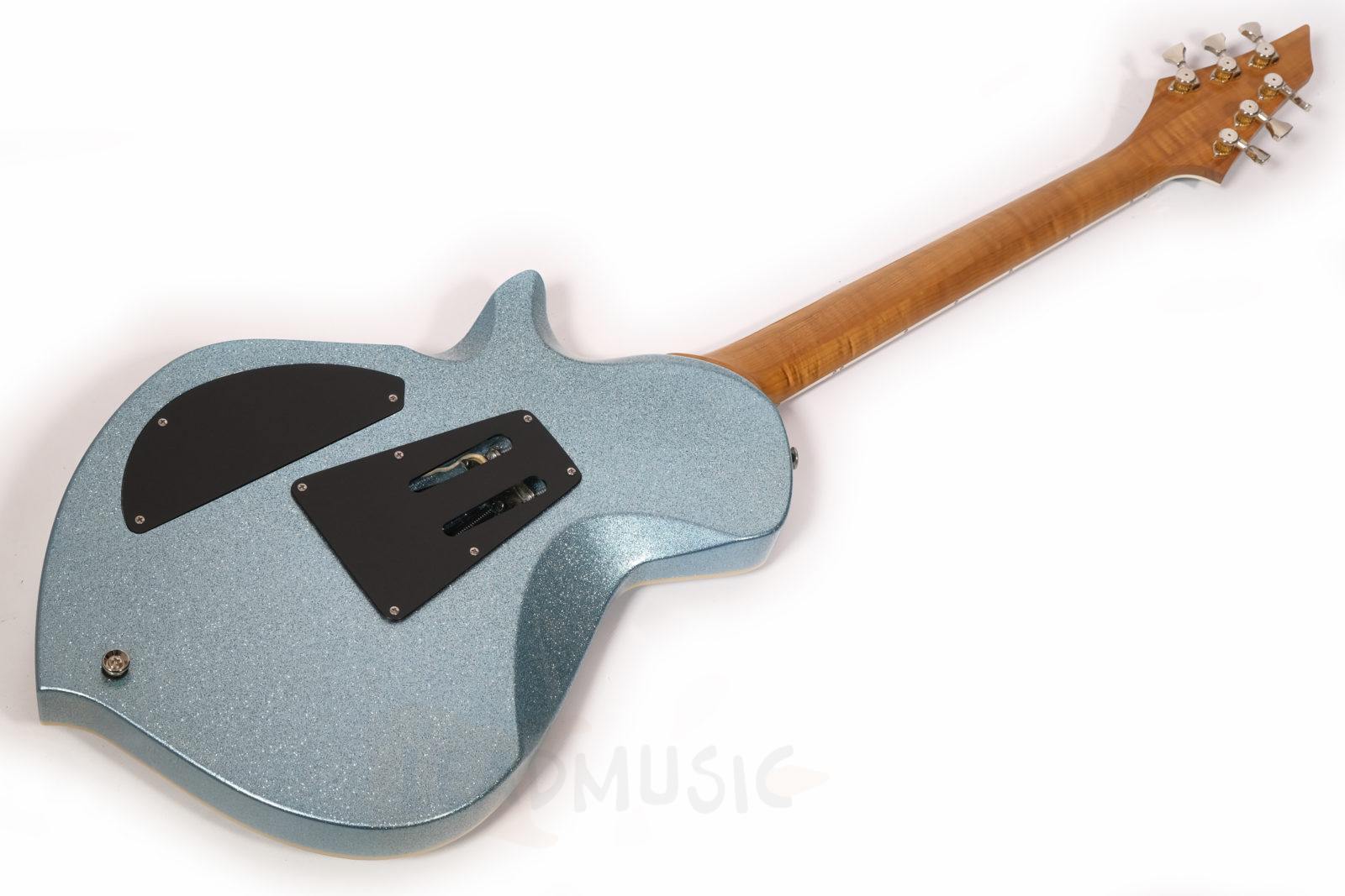 The sheer charm of this instrument is unbelievable!!! On the one hand, there is only one, and there will never be another; on the other hand, having been presented at the January 2025 NAMM Show, I simply had to bring this guitar back in my luggage. What a beauty—and above all, what a beast!!! Presented at the NAMM Show 2025, this SULLY Strella 71 is far more than just a guitar: it is a unique piece—yes, I repeat myself—designed as an exclusive one-off concept by John “Sully” Sullivan. Dressed in a stunning Ice Blue Sparkle finish, it reveals, beneath its deep reflections, a wide palette of blue tones that shift with the lighting. Featuring a lightweight mahogany body that offers a perfect balance of resonance, comfort, and sustain, this powerhouse is topped with a figured maple top… Because John Sullivan never does things halfway—he outfits his guitars, even with opaque finishes like this one, with figured maple. Yes, yes, yes…