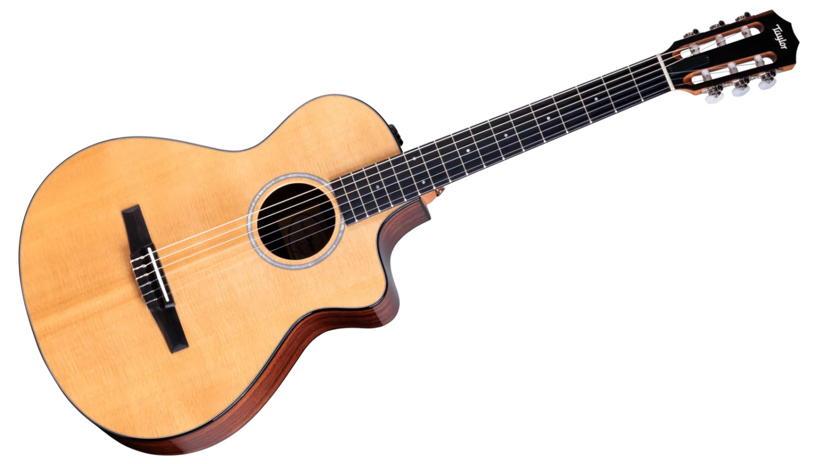 Blending inspiring nylon-string tonal flavors with smooth playability, the 212ce-N Plus is a professional-level instrument that comes at an appealing price. Thanks to a 12-fret neck, slightly wider 1-7/8-inch nut width and slender Taylor neck, this cutaway Grand Concert is one of the most playable nylon-string guitars on the market.