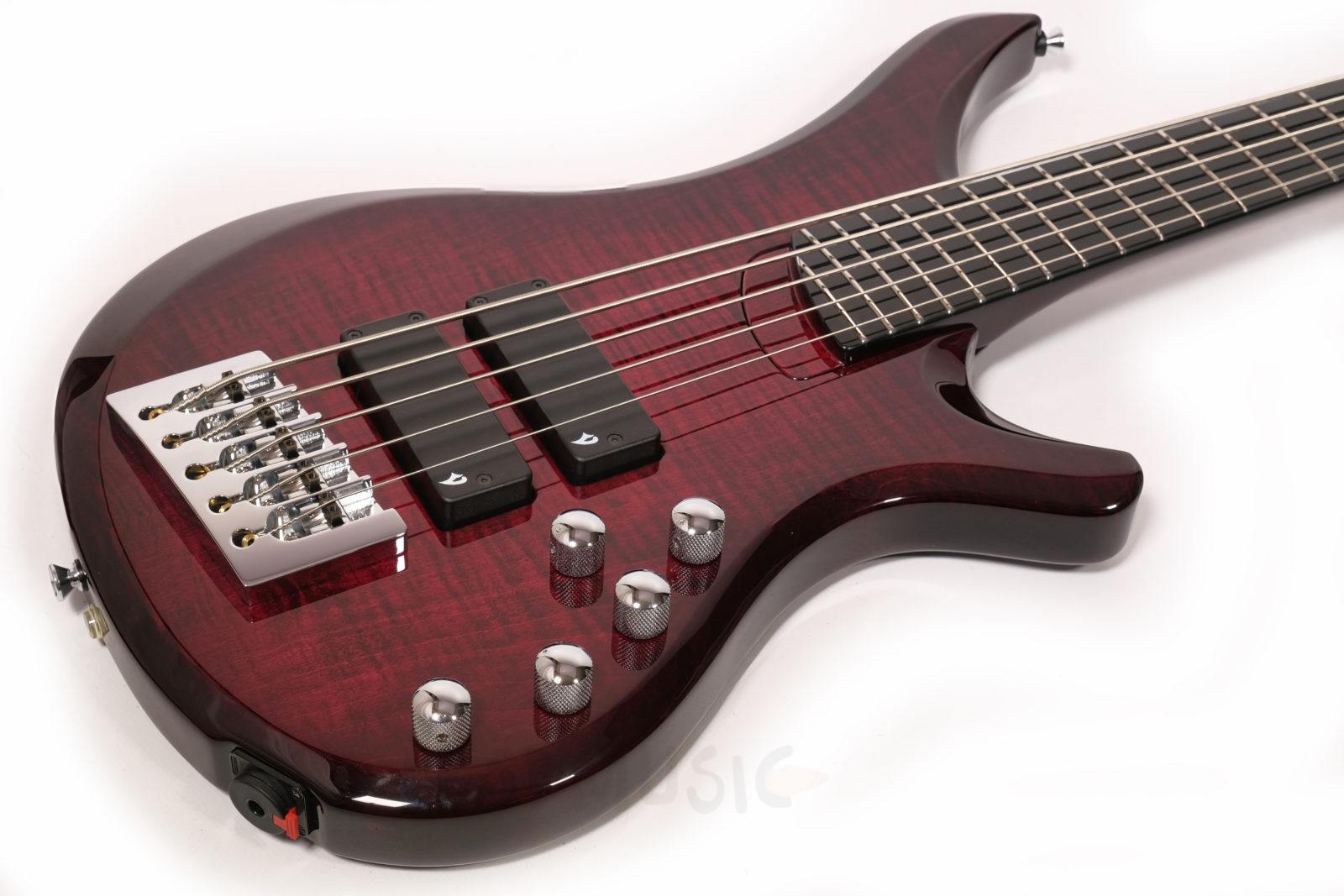 This Vigier Passion IV 5-String Deep Burgundy (2020) is brand new, straight from the Swiss Vigier stock. Super comfortable, ergonomic, and above all, the tone is massive!!! Alder body with gorgeous flamed maple top and back, bolt-on maple neck with Phenowood fingerboard. Thanks to its 24 medium stainless frets and 11.81’’ radius, playability is just insane: shredding, tapping, you name it – effortless and smooth. The 33.8’’ scale feels closer to a 4-string, making it way more comfortable than the usual 35’’ 5-strings, yet delivering a sharper, more precise attack. Vigier’s own pickups are huge – wide tone, never muddy or greasy – combined with the onboard 3-band EQ and versatile pickup positions, the tonal range is massive.