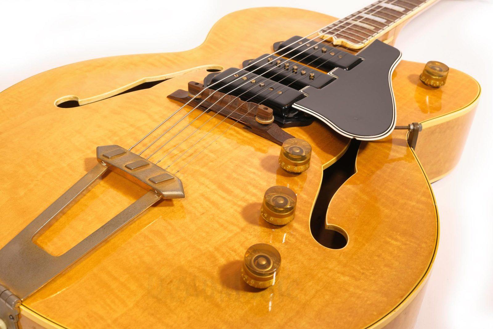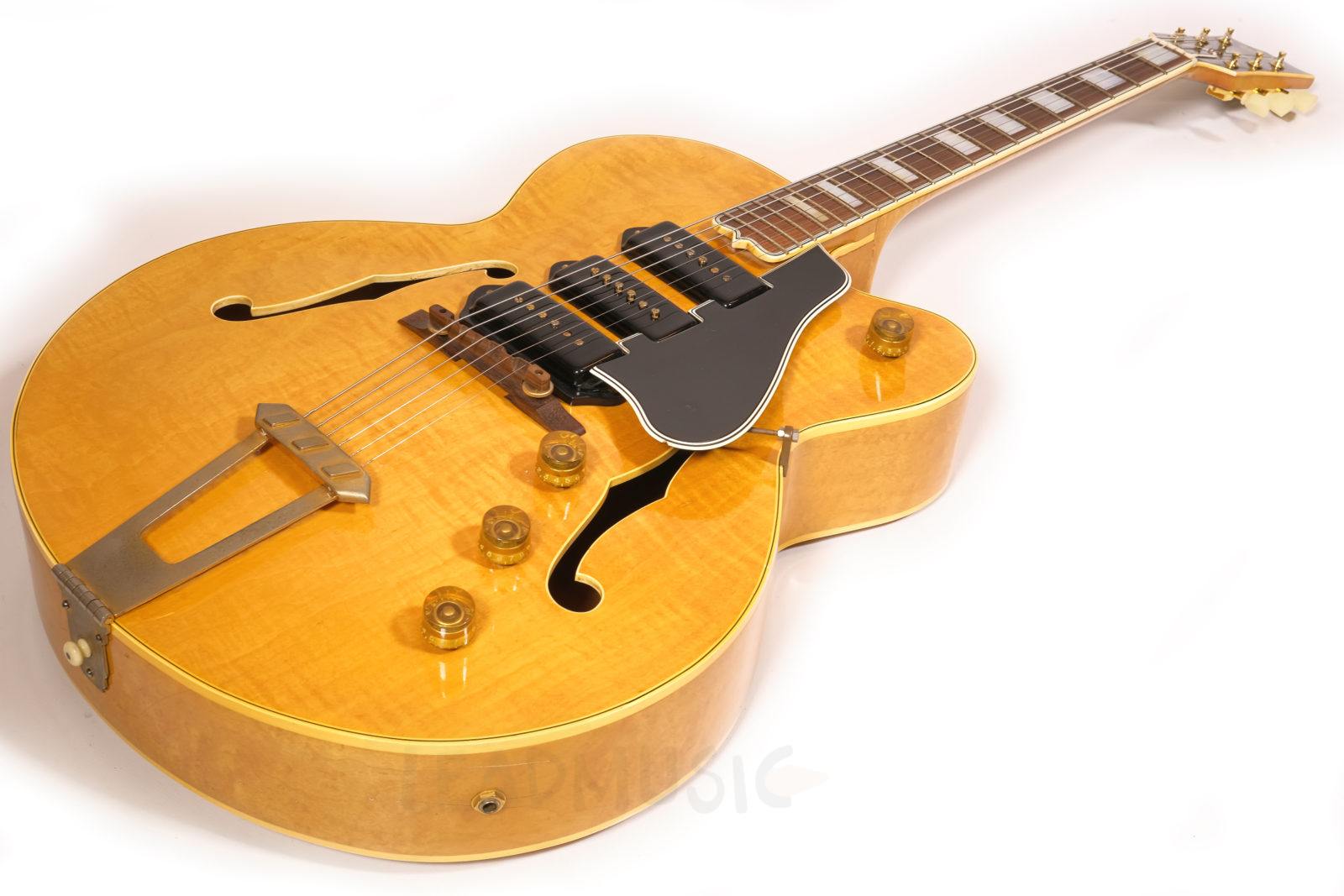 Voici une magnifique et exceptionnelle Gibson ES-5 d’époque, et par rapport à de nombreuses autres ES-5 vues et essayées soit lors des salons de collectionneurs ou dans des magasins de référence, notre Gibson ES-5 de 1951 est de toute beauté. La belle n’a manifestement été jouée que par des guitaristes très soigneux et quand on sait que seules 77 Gibson ES5 Natural ont été produites en 1951, c’est vous dire la rareté de la belle.