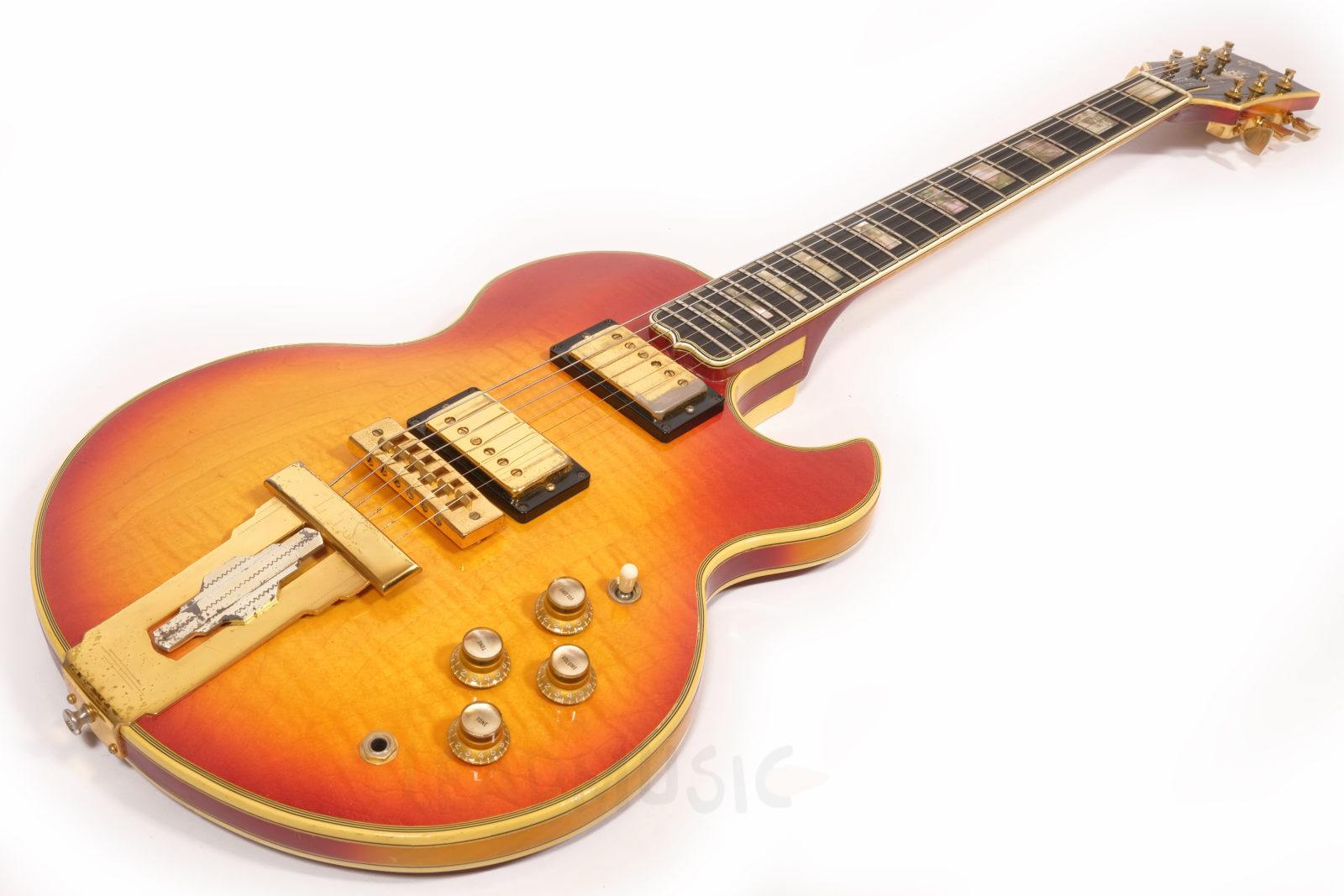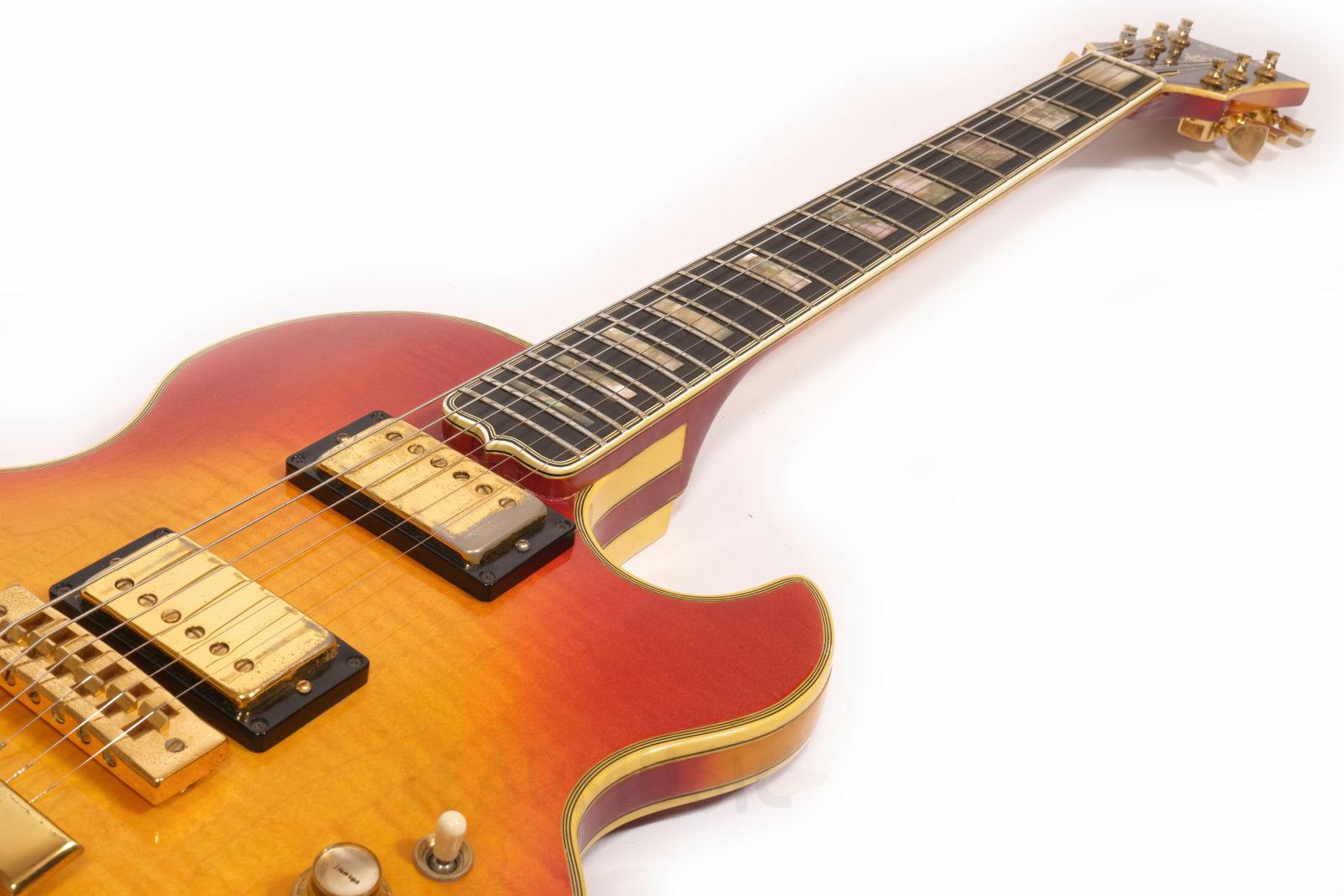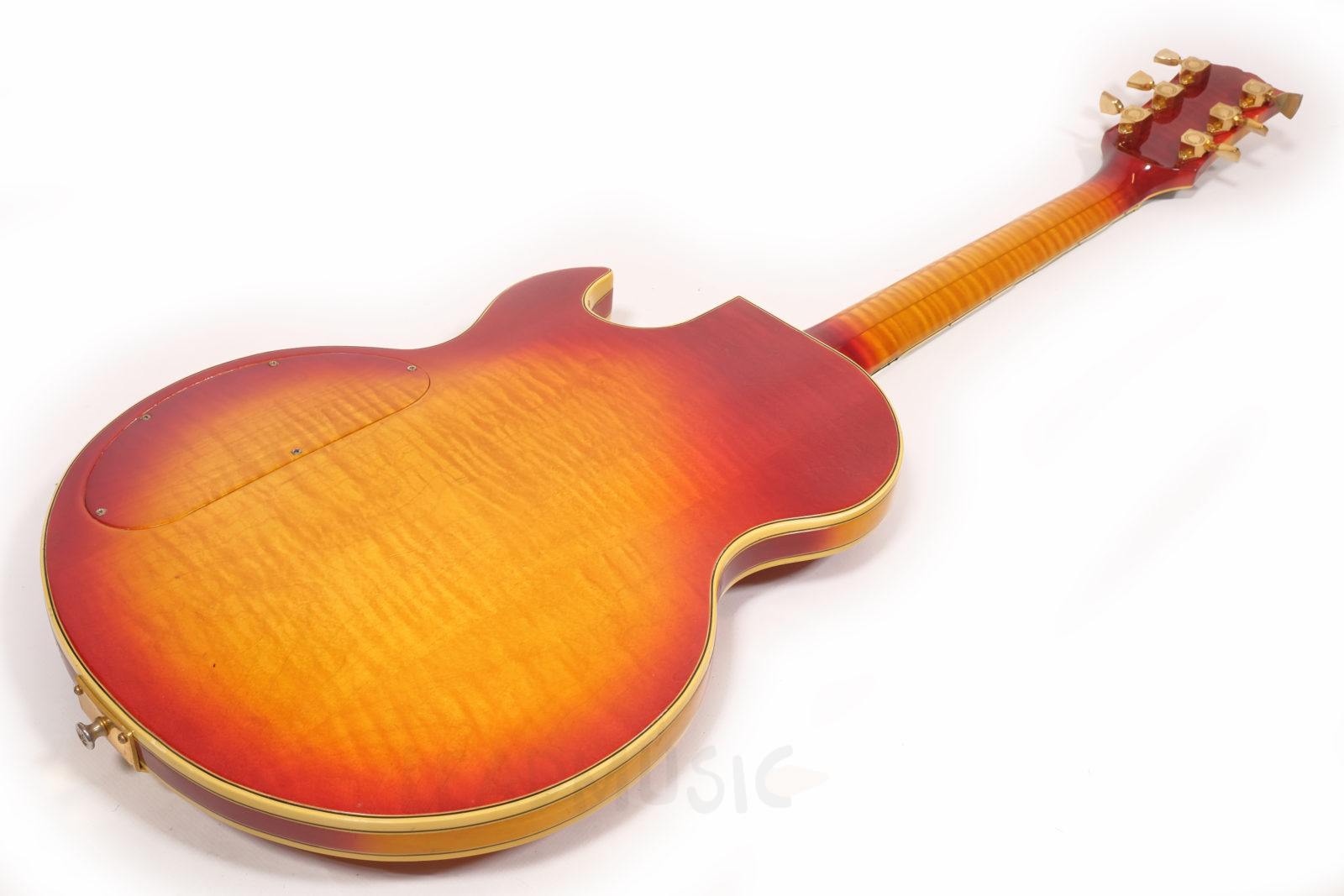 Oh la la… une Gibson L5S Sunburst de 1975 en superbe état, ça ne se croise pas tous les jours ! On parle là de la déclinaison solid body de la mythique L5, la référentielle guitare de Jazz,  mais qui elle est sortie au début des années 70 afin d’offrir une alternative plus moderne et punchy aux grands classiques de Gibson.  Au final, la L5S est une guitare rare, un instrument à part, à la croisée des mondes: le luxe et l’élégance de la L5, mais avec un corps plutôt solid body (car évidé en fait, sinon elle pèserait un âne mort) et une attitude tout de même rock’n’roll.