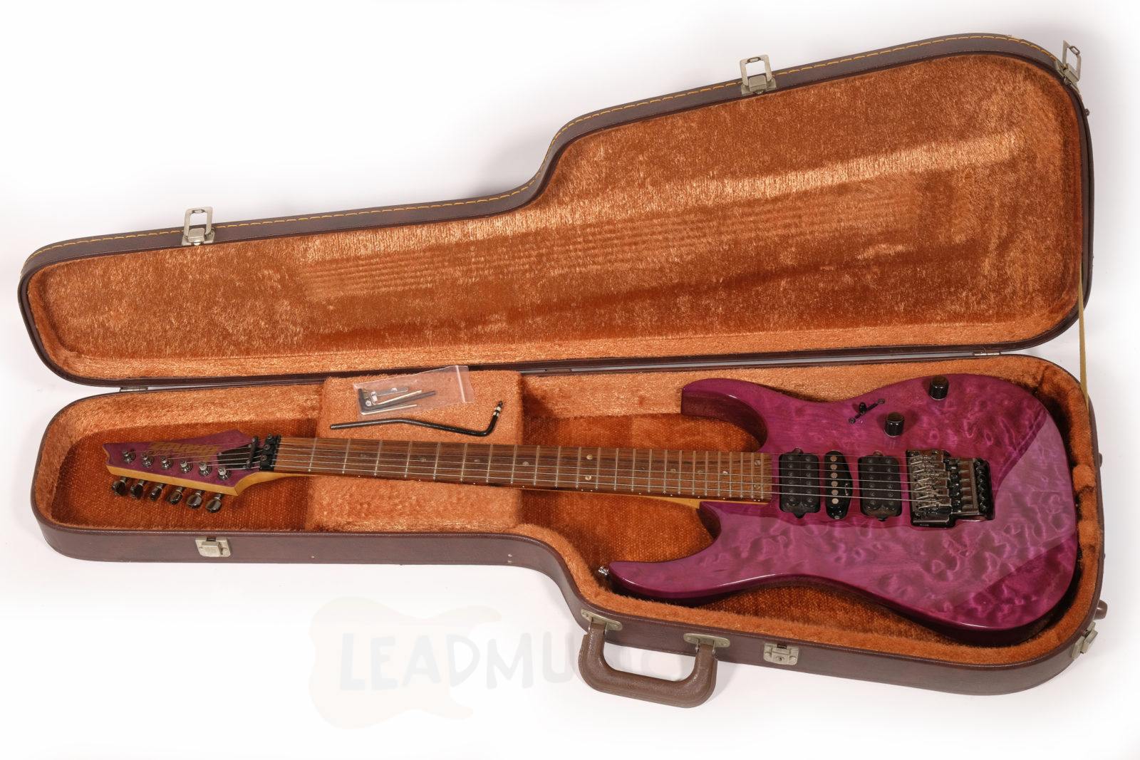 L’instrument possède des micros Di Marzio PAF Pro en humbucker et un Rio Grande en single coil, qui a été monté dans le début des années 2000. Hardware en finition black. Cette guitare est en bon état, et montre des traces de jeu et des raies éparses, mais pas de dégâts notoires. Livrée  avec un coffre Ibanez export original, cette gratte est une petite bombe pour le Shred !!