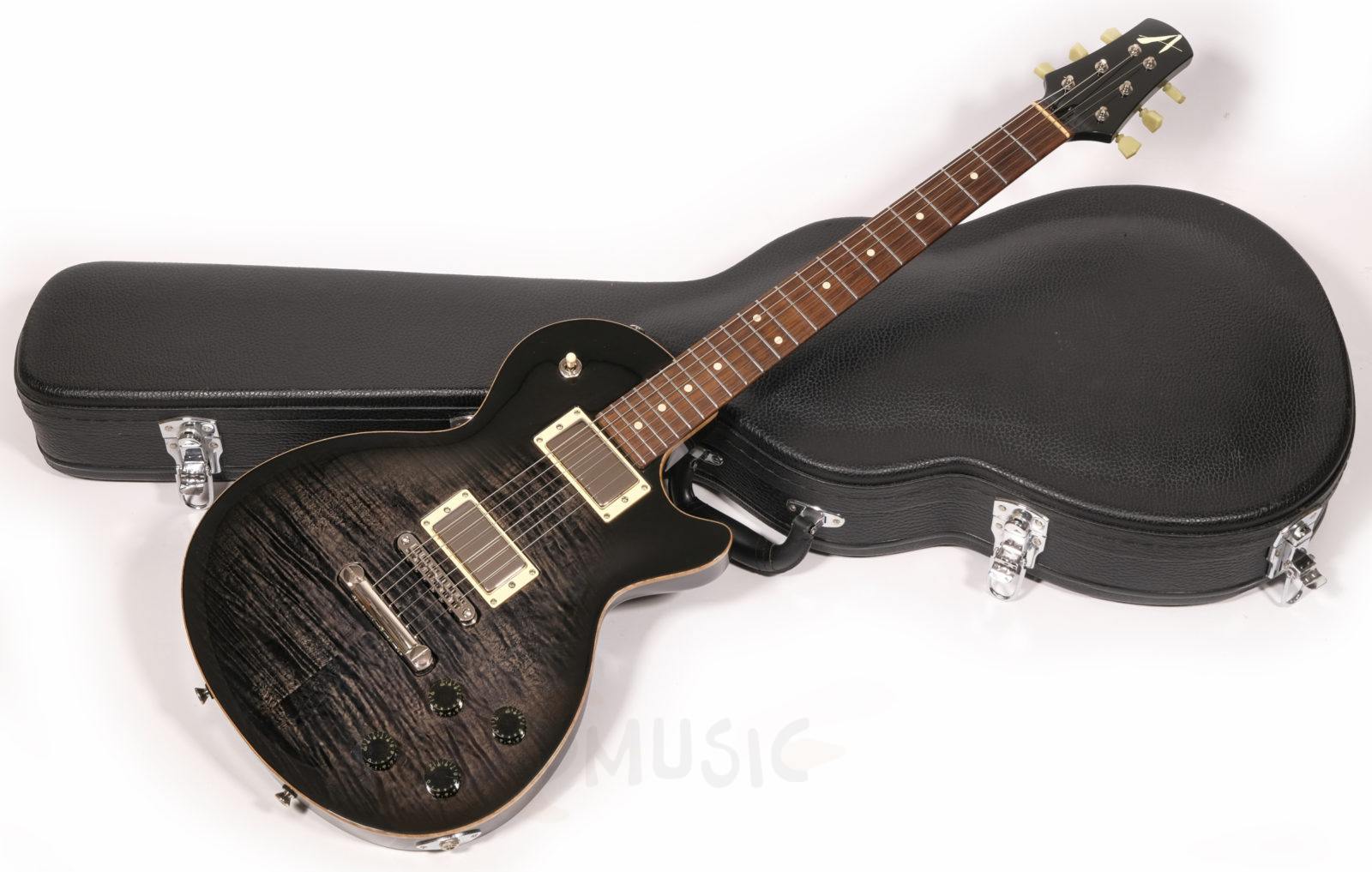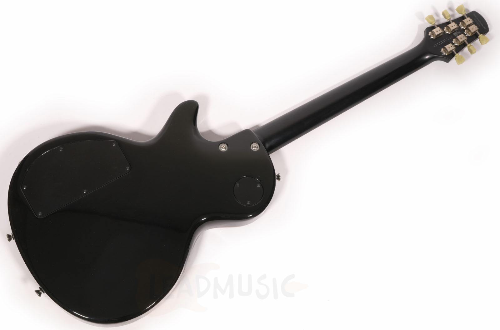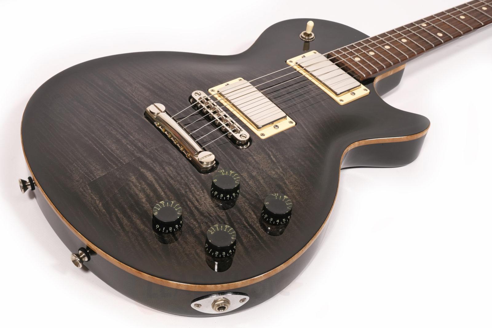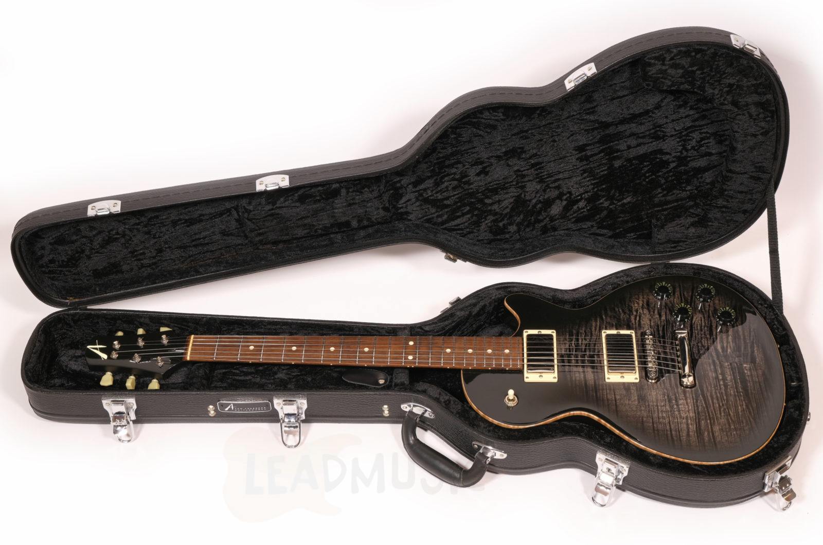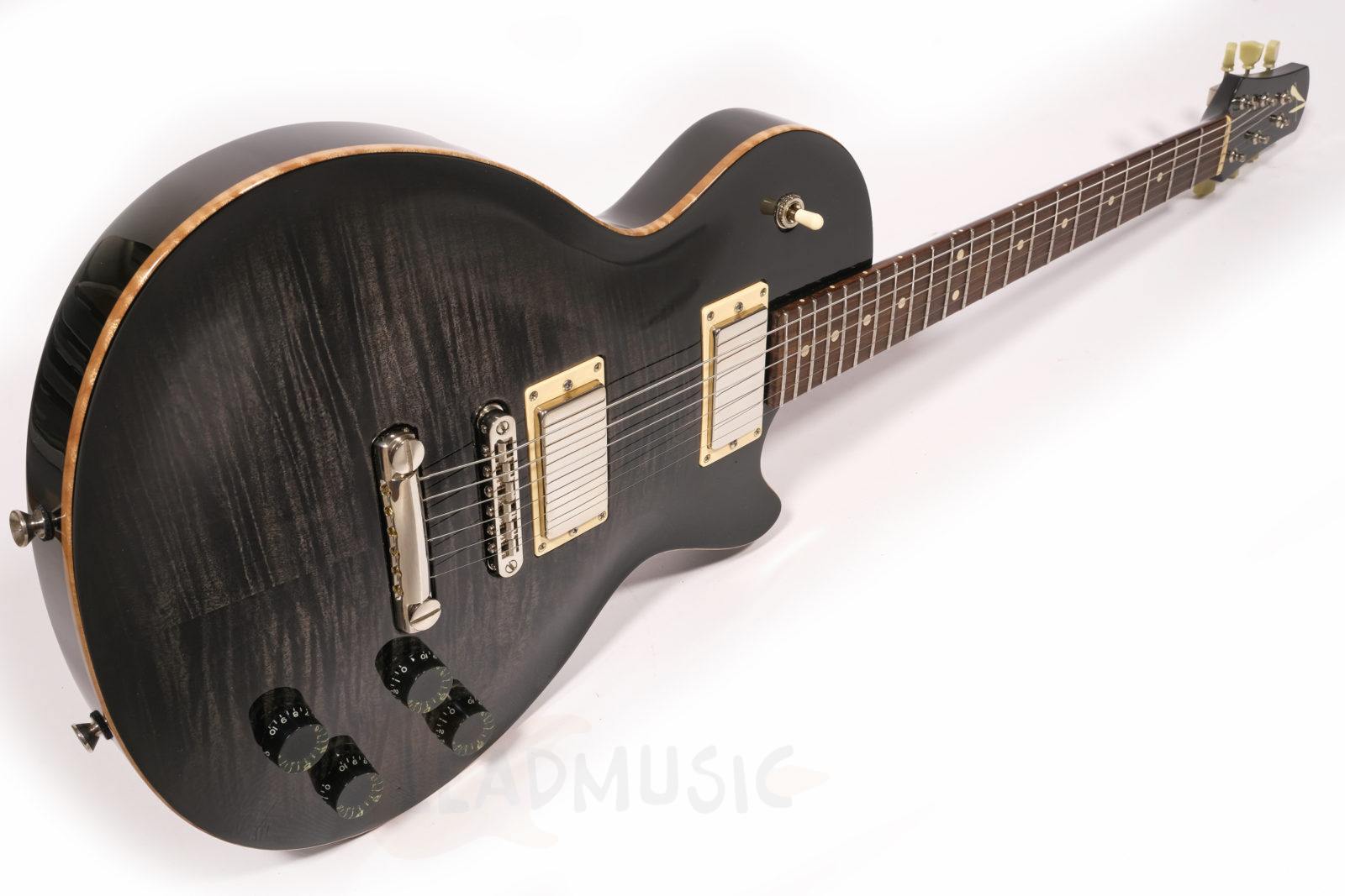 Bam !!! Comme elle est belle celle-là, et tout a été conçu pour rendre cette guitare ergonomique, confortable et redoutable. Cette Tom Anderson Bulldog de 2010, dans sa superbe finition Trans Black, incarne decidemment tout ce qui fait la réputation de la lutherie Anderson : précision, musicalité et élégance sans compromis. Conçue aux États-Unis, cette guitare se distingue des Les Paul, dont elle reprend le design, par son manche vissé. Mais du coup, avec son corps en acajou qui apporte une profondeur naturelle au son, avec des graves pleins et un médium riche, et sa table en érable, et joliment figuré d’ailleurs, qui amène une définition idéale pour les registres rock, blues et fusion en overdrive et grosses distos, cette guitare est bien plus polyvalente qu’une Les Paul…