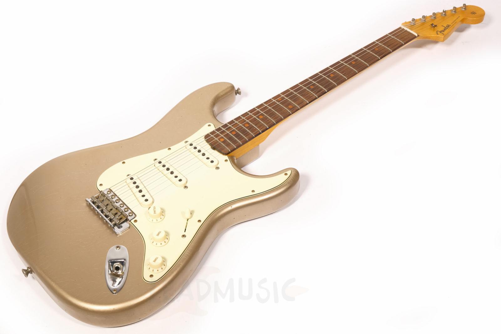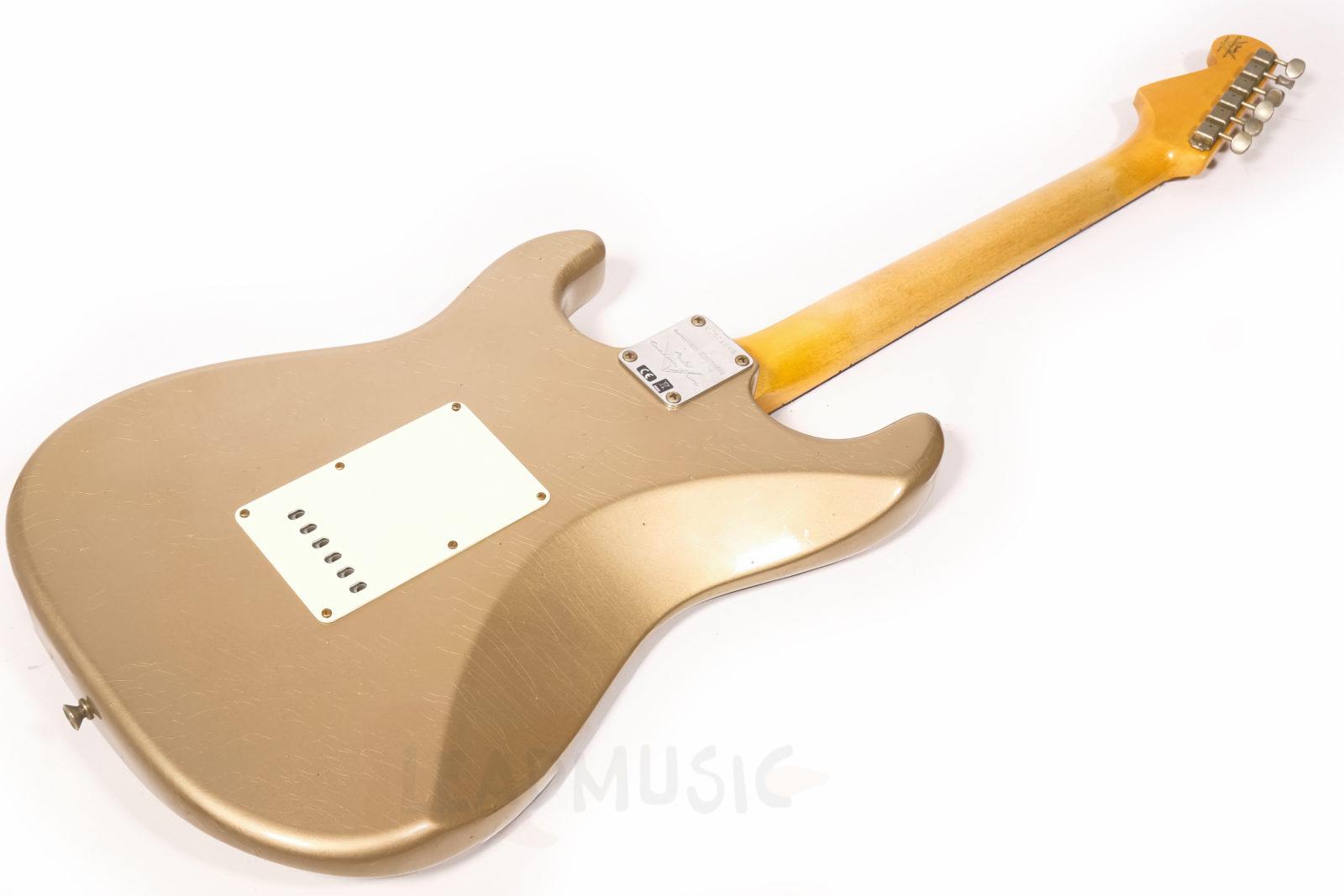 Tellement belle cette Strat en Super Faded Aged Shoreline Gold. Et avec ses appoints typiques de 1959, la belle a une allure vraiment sobre. Cette superbe édition limitée possède quelques spécifications uniques et vraiment alléchantes, ainsi le très joli finish, un manche en érable Rift Sawn et une touche en palissandre, et le pickguard three Ply typique de la toute fin des années 50.