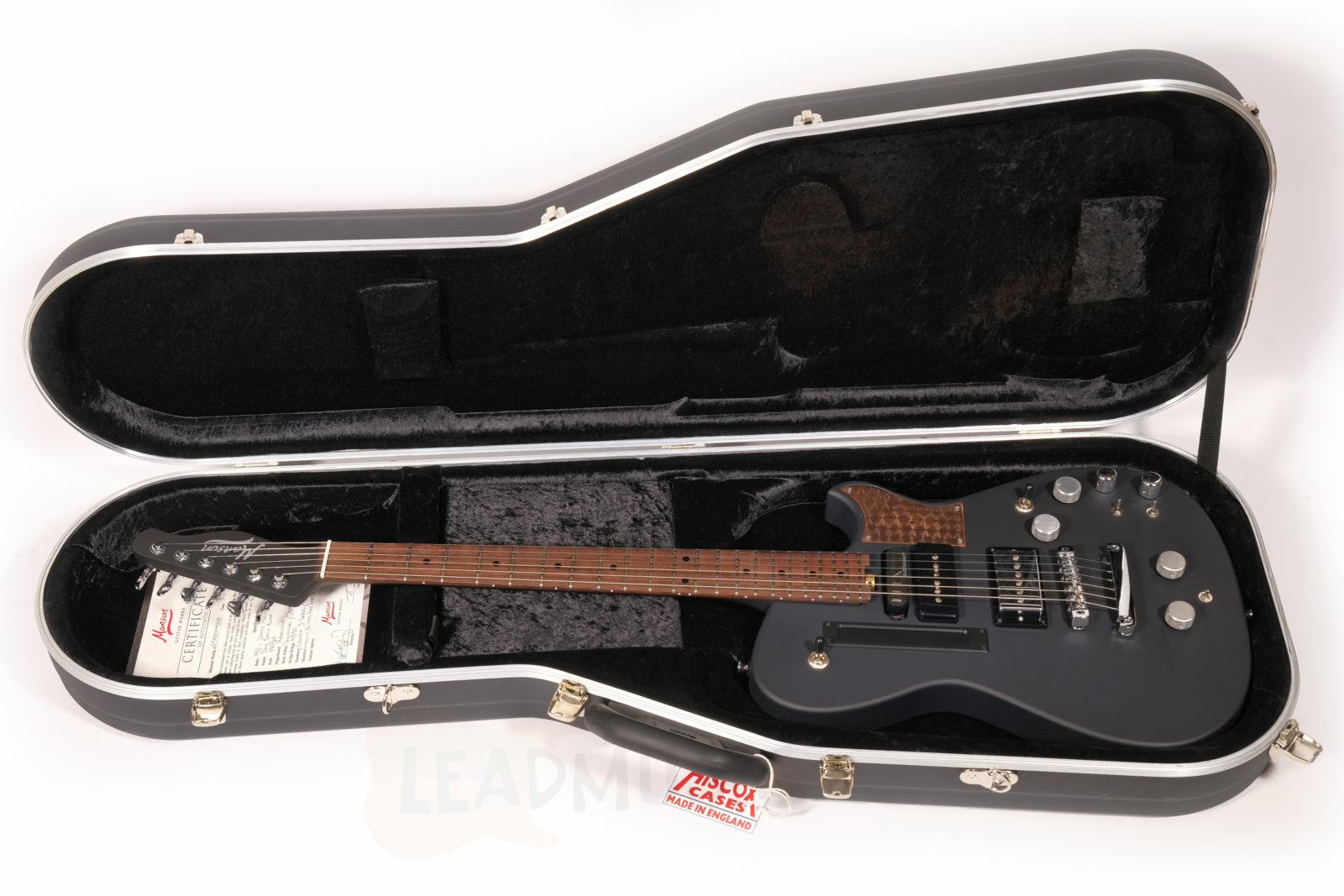 Rare guitare donc, livrée avec son certificat d’authenticité signé par Matthew Bellamy, une sangle MGW Premium Leather Copper Foil Strap Manson et son coffre Hiscox original.