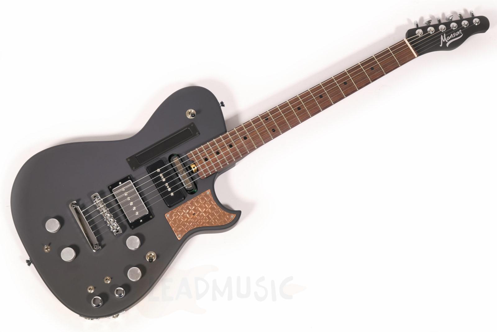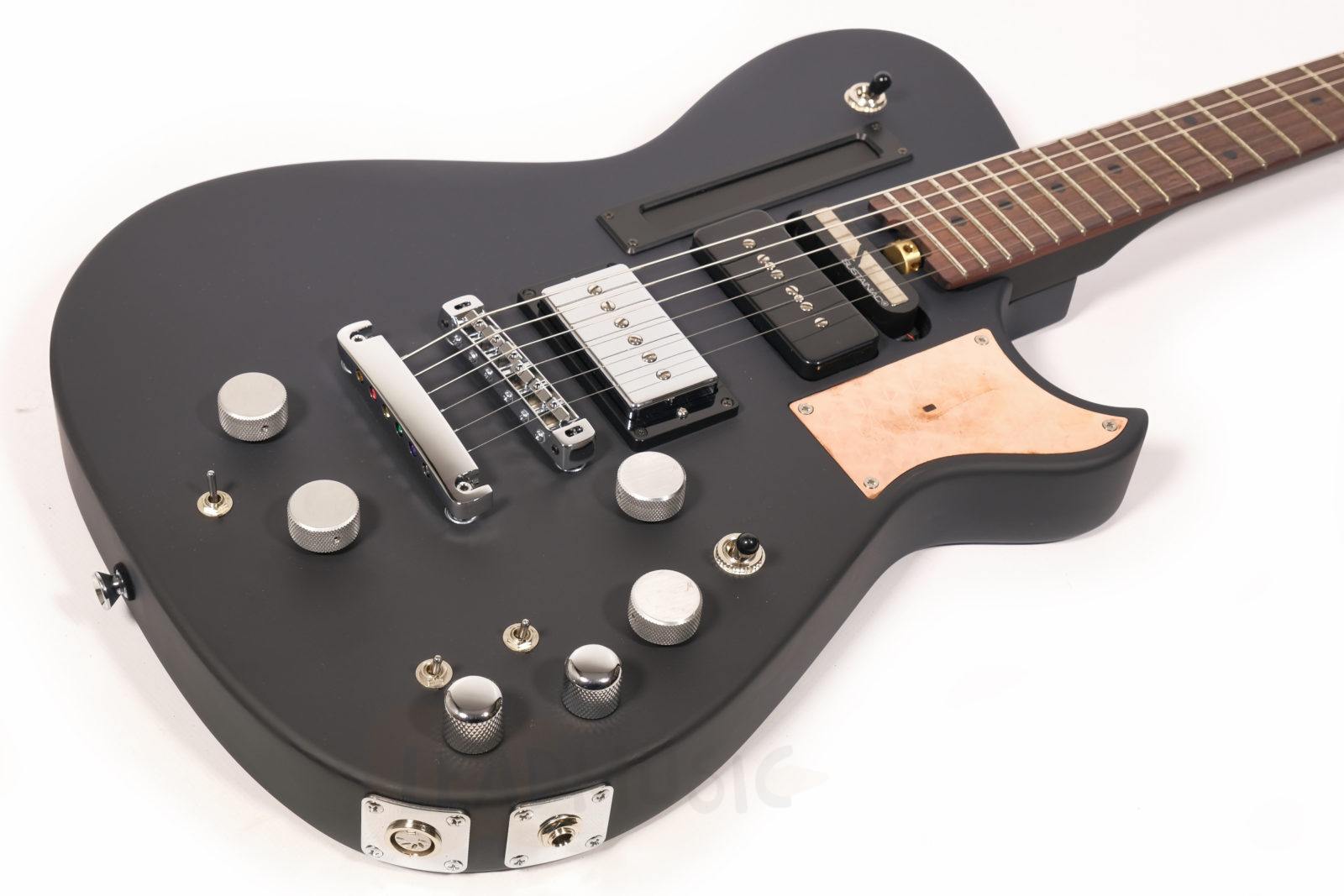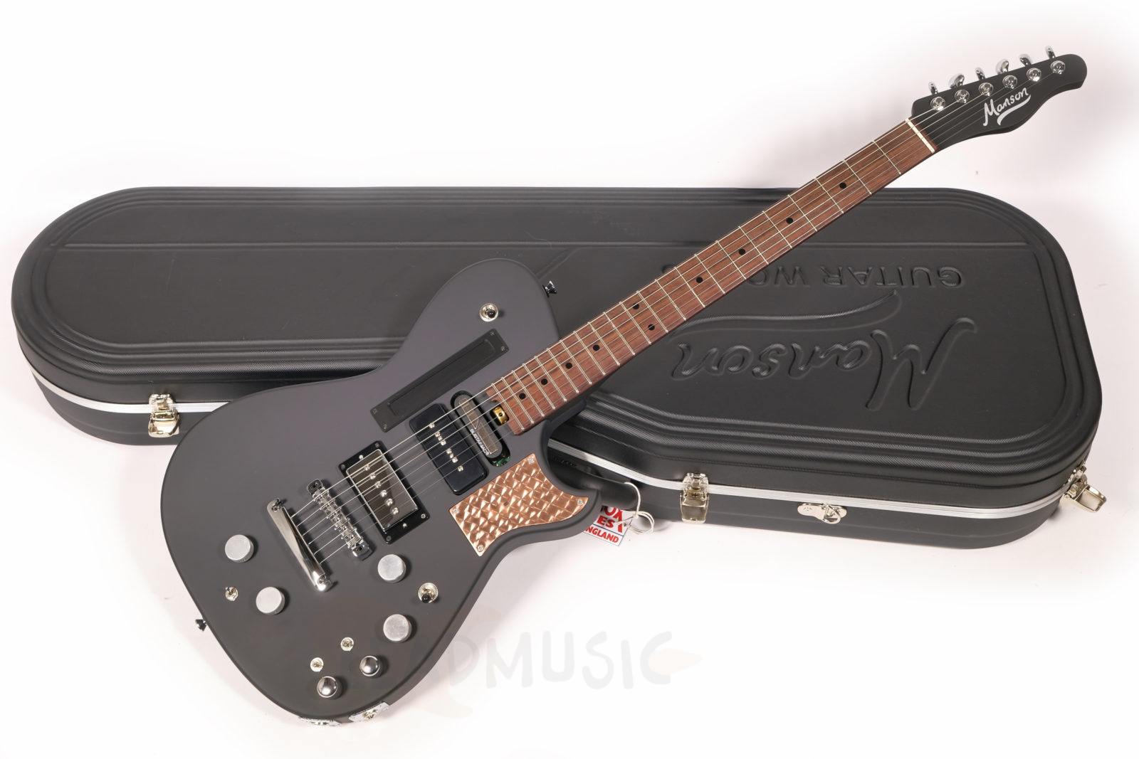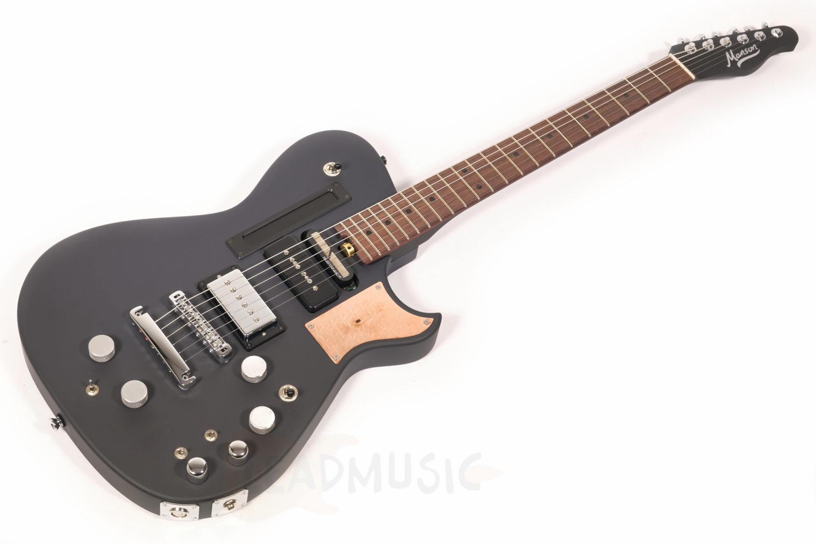 Fabriquée par Manson Guitars au Royaume-Uni, la Black Edition reflète une approche typiquement britannique de la fabrication d’instruments : expérimentale, sans compromis et guidée par l’artiste. Le concepteur original des circuits, Ron Joyce, toujours impliqué dans de nombreuses Manson emblématiques, a une nouvelle fois conçu les circuits des versions New Era avec une précision remarquable. La caractéristique la plus frappante de la Black Edition est la plaque de cuivre façonnée incrustée dans la corne supérieure du corps. Passez la main devant et vous contrôlez un effet wah directement avec vos mouvements. Comment cette idée est-elle née ? Matt explique :