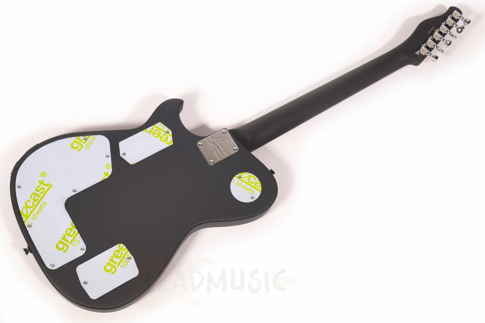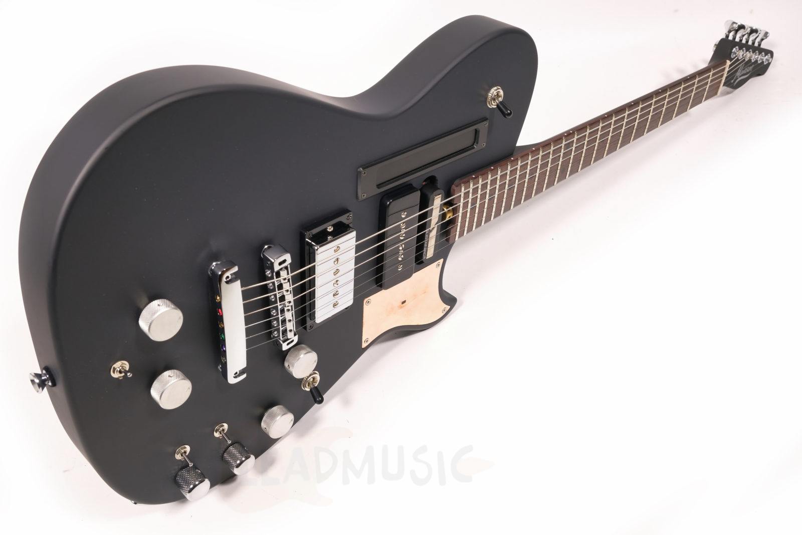Apparue pour la première fois durant l’ère Absolution et immortalisée dans le clip « Time Is Running Out », la Manson 007 (ou Black Edition, ou BlackEd ou…ok, on a compris…) est bien plus qu’une icône visuelle, mais un outil conçu pour l’expression physique immédiate. Au cœur de l’instrument se trouve un contrôleur MIDI à ruban intégré le long du bord du corps. Contrairement aux potentiomètres rotatifs ou aux joysticks, ce ruban permet un contrôle continu et gestuel. Glisser, taper et exercer une pression deviennent partie intégrante de la performance plutôt qu’un simple réglage. Reliée à votre appareil MIDI via une fuzz intégrée, un contrôle wah de type theremin et un sustain quasi infini, la guitare se comporte moins comme une source de signal passive et davantage comme une véritable surface de contrôle vivante.