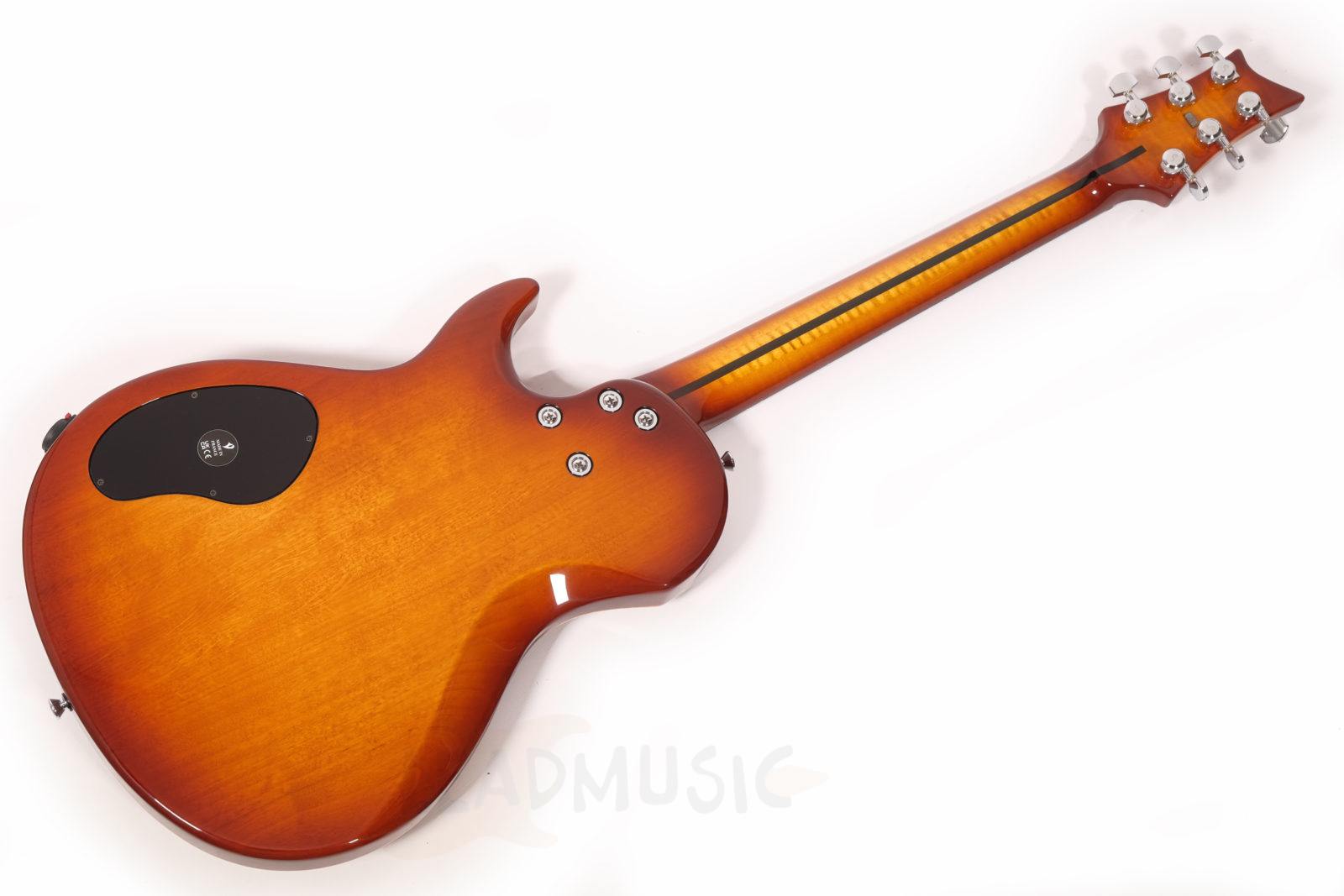 Cette G.V.Wood Amber de 2023 est neuve et vient des stocks suisses de Vigier. Hyper confortable, ergonomique et surtout ça sonne !!! Le corps en aulne est léger et possède les contour body habituels, la table est en érable figuré, splendide, le manche vissé est en érable, avec une touche en phenowood, et surtout, grâce à ses 22 frettes médium Stainless et son radius de 11,81 », offre un confort incroyable : on shred sans aucune difficulté avec une aisance rare et plaisante… Le diapason de 24.8 » n’est pas sans rappeler Gibson mais la comparaison s’arrête là tant la GV de Vigier est supérieure en confort et en gros son tranchant et précis. Les micros de la marque allemande Amber (bobinés à la main) sont gigantesques, le timbre est large et jamais pâteux ni gras, et les positions de micros couvrent un vaste registre musical. Une superbe guitare en définitive…